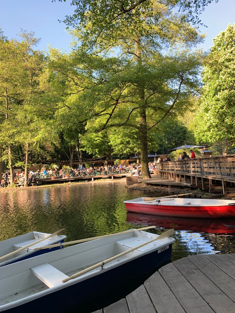 Peut-être que les photos vous parleront si vous avez lu mes articles précédents … En effet, il s’agit ici du Biergarten du Tiergarten. Mon amour pour cet endroit étant déjà connu de tous, inutile que je m’étale sur le sujet! Venez-y un peu plus tôt (ou restez-y un peu plus tard si la bière n’a pas eu trop d’effets!) pour louer une barque le temps d’une jolie balade sur l’eau juste à côté …