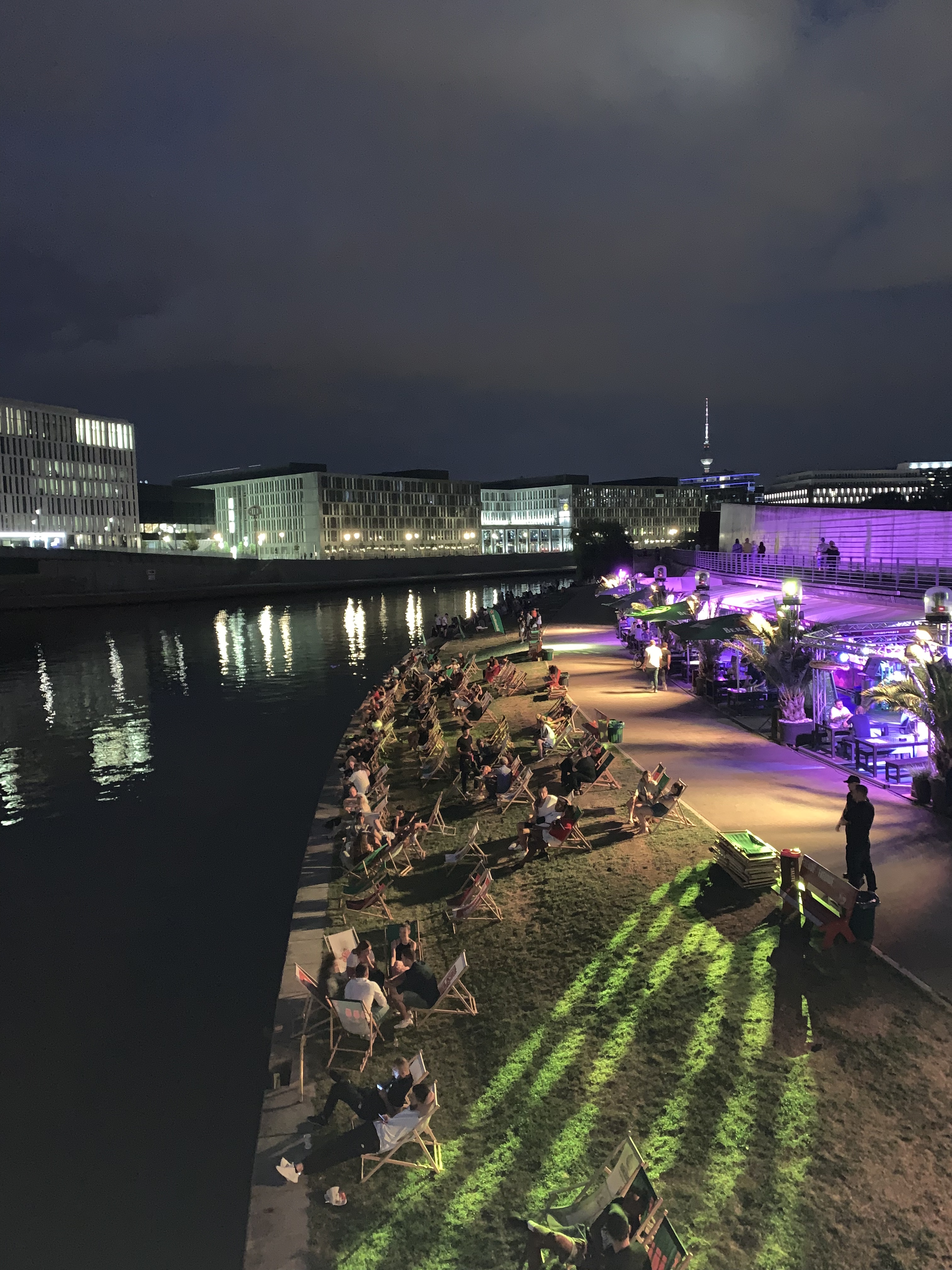 Situé face à la « Hauptbahnhof » (Gare centrale, la plus grande d’Europe et aux 34 ascenseurs!!), sa localisation au bord de la Spree (fleuve berlinois) vous permettra de passer un moment « chill » à siroter sur un transat au son de l’électro.