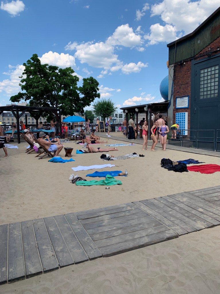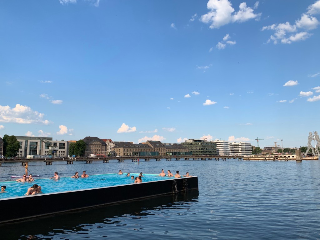 Badeschiff était l’un des lieux insolites berlinois que j’avais le plus hâte de découvrir! Parfait point de rencontre des populations hype de Berlin, on y vient pour se baigner … dans un container! La Spree étant trop polluée, la capitale a su être ingénieuse en offrant une baignade dans un lieu pour le moins inédit. Autour, une plage artificielle a été crée, invitant à la farniente en sirotant un cocktail au son de la musique chill.