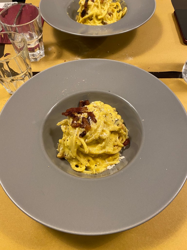 Nous avons finalement trouvé un petit restaurant juste à côté du premier cité, I Vascellari, qui était très bon. Au menu: spaghetti alla carbonara et tiramisu… le ton du séjour est donné!