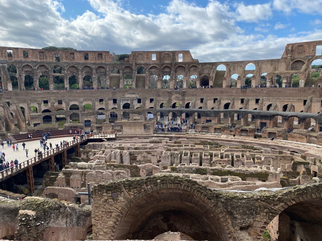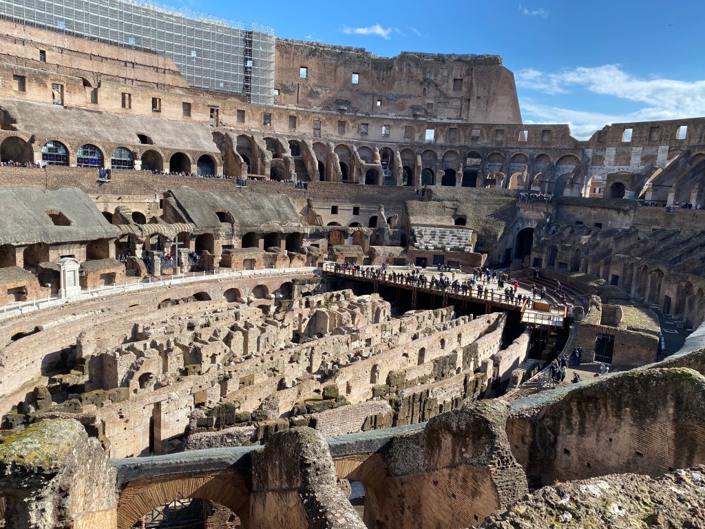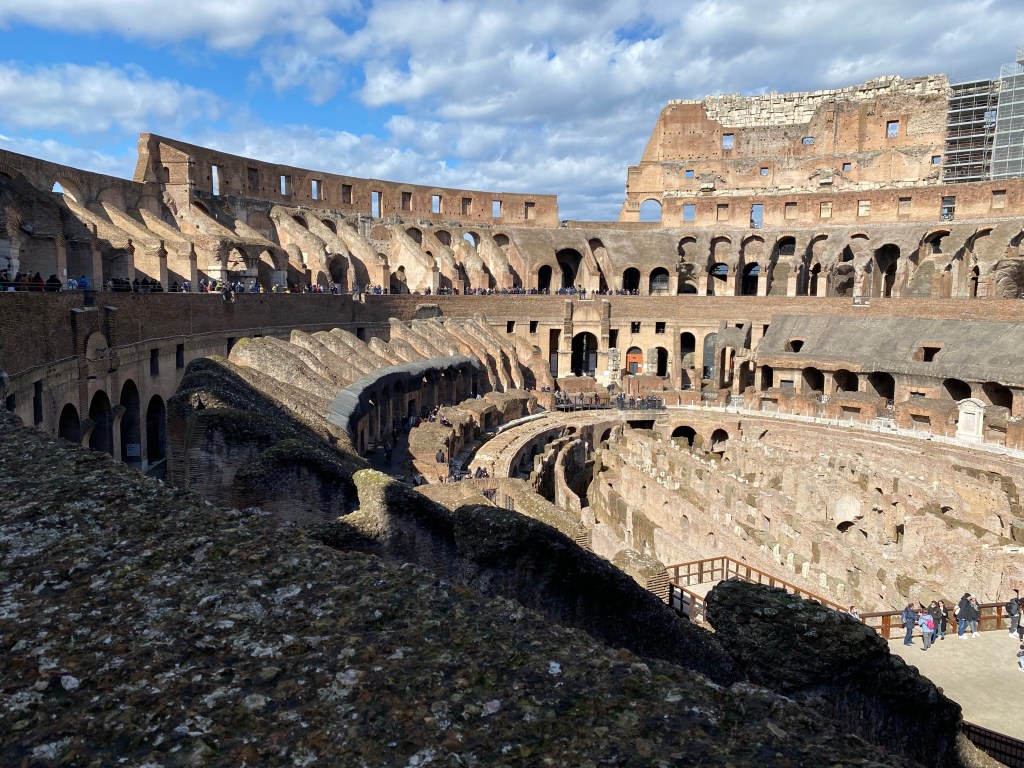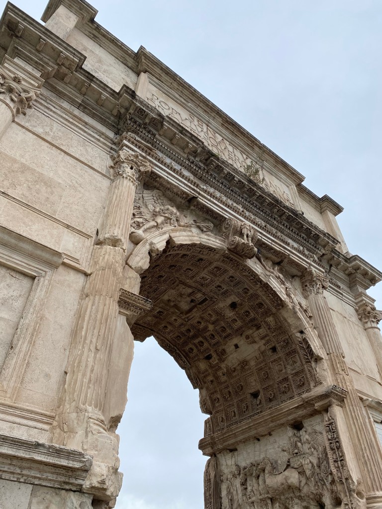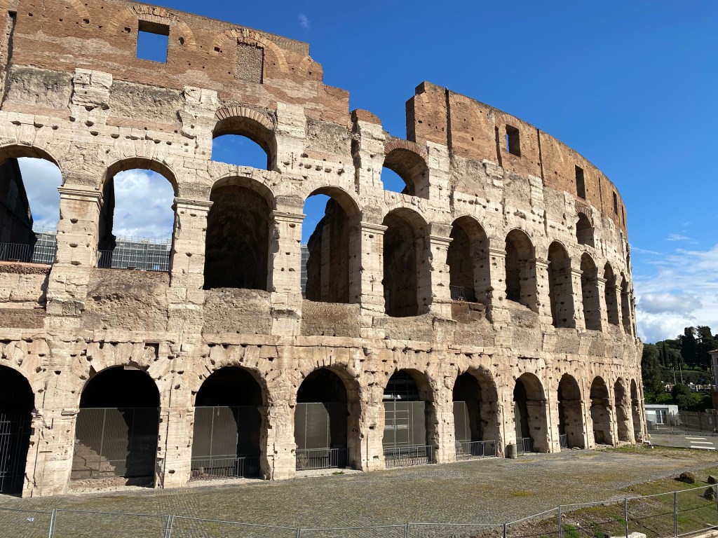 Quoi de plus typique que de commencer notre vadrouille par le Colisée? On n’imaginerait pas une virée à Rome sans faire un détour par cet impressionnant monument. Pour ce dernier, je recommande vivement de prendre les billets coupe file. Ils permettent de se rendre devant le monument à un horaire donné et d’y rentrer bien rapidement. C’est conseillé de s’y rendre tôt. Nous avons pris les billets ici, nous permettant aussi l’accès au Forum Romain et au Palatin.