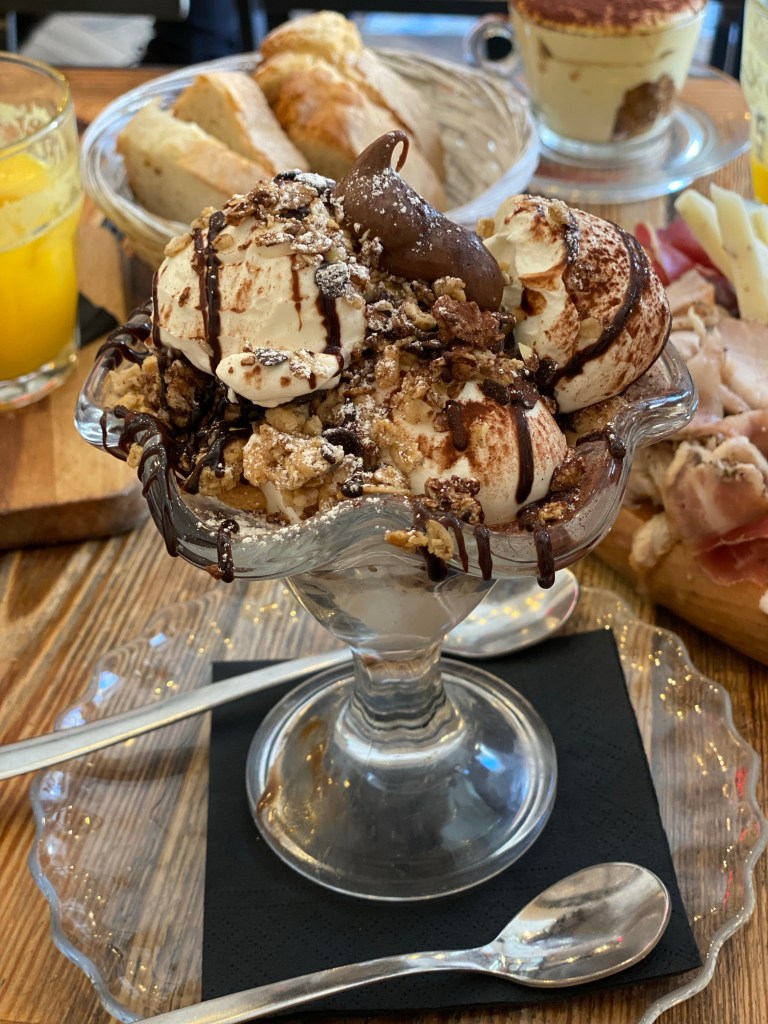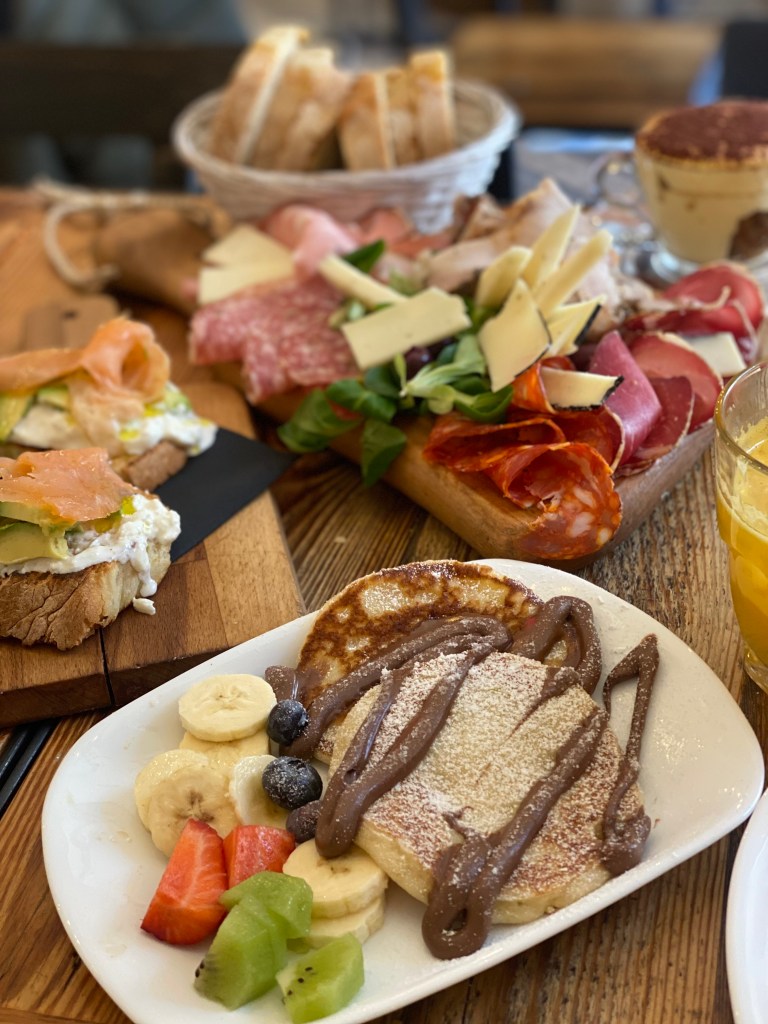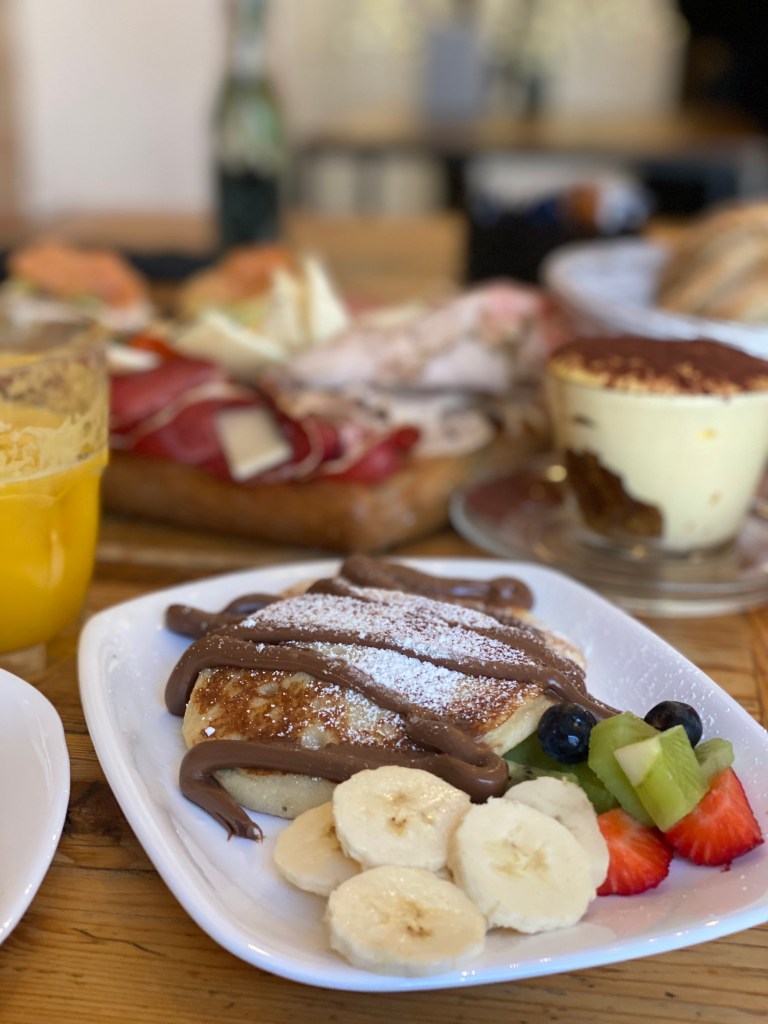 Vraiment je l’ai trouvé excellent. Il y en avait pour tous les goûts tant en sucré que salé. Planche de charcuterie italienne, toast avocat/saumon, pancakes fluffy au chocolat, tiramisu, … mention spéciale à la coupe de yaourt à la grecque avec du granola chocolat et la pâte à tartiner sur le dessus… un délice. Le tout accompagné d’un thé et de jus d’oranges pressées.