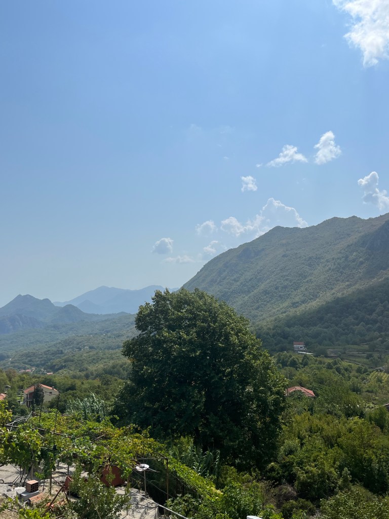 Moins d’une heure plus tard nous arrivons à Njegusi, un village rural du Mont Lovcen, connu pour sa production de jambon sec et de fromage fumé. Nous nous apercevons très rapidement que la découverte va être rapide car seulement 60 personnes vivent ici. Pour autant, c’est si agréable d’être au coeur de la nature, loin du tourbillon touristique.