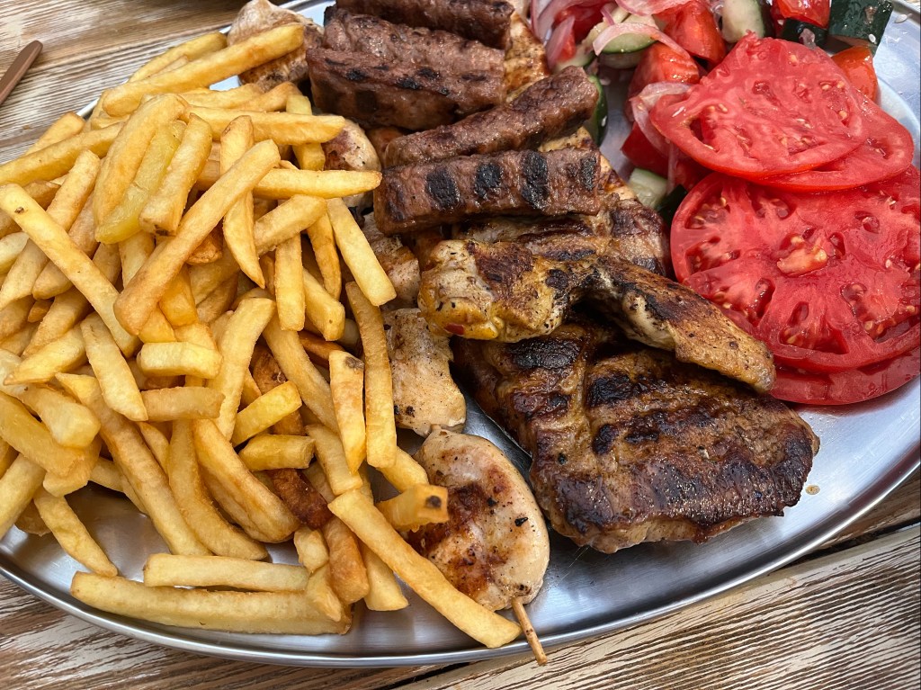 Le soir nous dînons dans un restaurant de Virpazar, sympa même si en soit les plats n’ont rien d’exceptionnel. Par contre, une chose est certaine: la générosité décrit définitivement les Monténégrins! Ils servent chaque fois des quantités énormes!