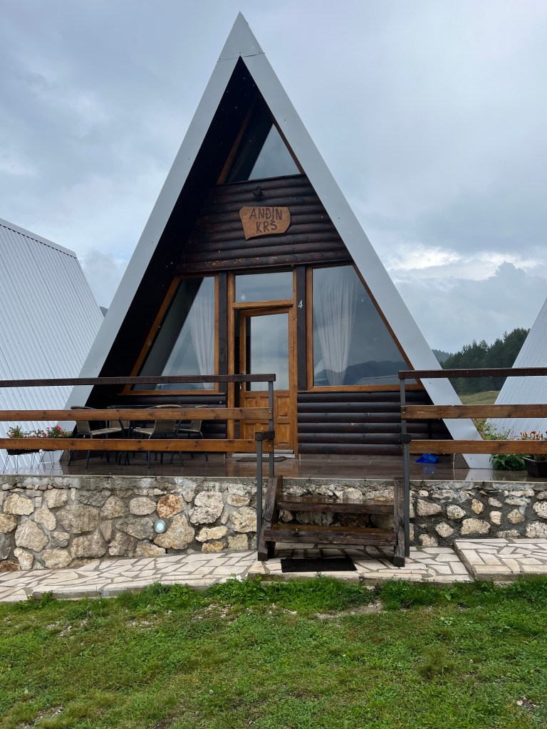 Le logement que nous avions pris pour ces derniers jours était celui que nous attendions le plus. Des cabanes, cosy à souhait, au coeur de la nature: what else?! Et c’est encore plus agréable quand il pleut!! Elles sont situées à Zabljak, environ 25 minutes du Lac Noir.