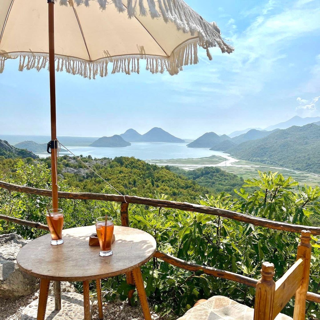 Nous partons ensuite plus au nord du Lac Skadar. Une fois encore, la route est magnifique et nous faisons un arrêt qui reste l’un de mes plus beaux souvenirs de ce voyage. Un arrêt imprévu au bord de la route, présentant un paysage de carte postale face à nous. Nous nous posons ici pour contempler cela, autour d’un bon sirop maison. Le petit cabanon que tient le Monsieur n’a malheureusement pas de nom mais c’est donc sur la route entre Virpazar et Sindon.