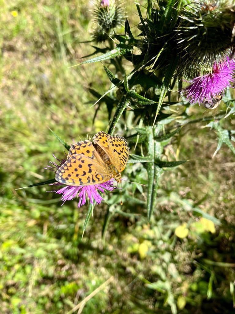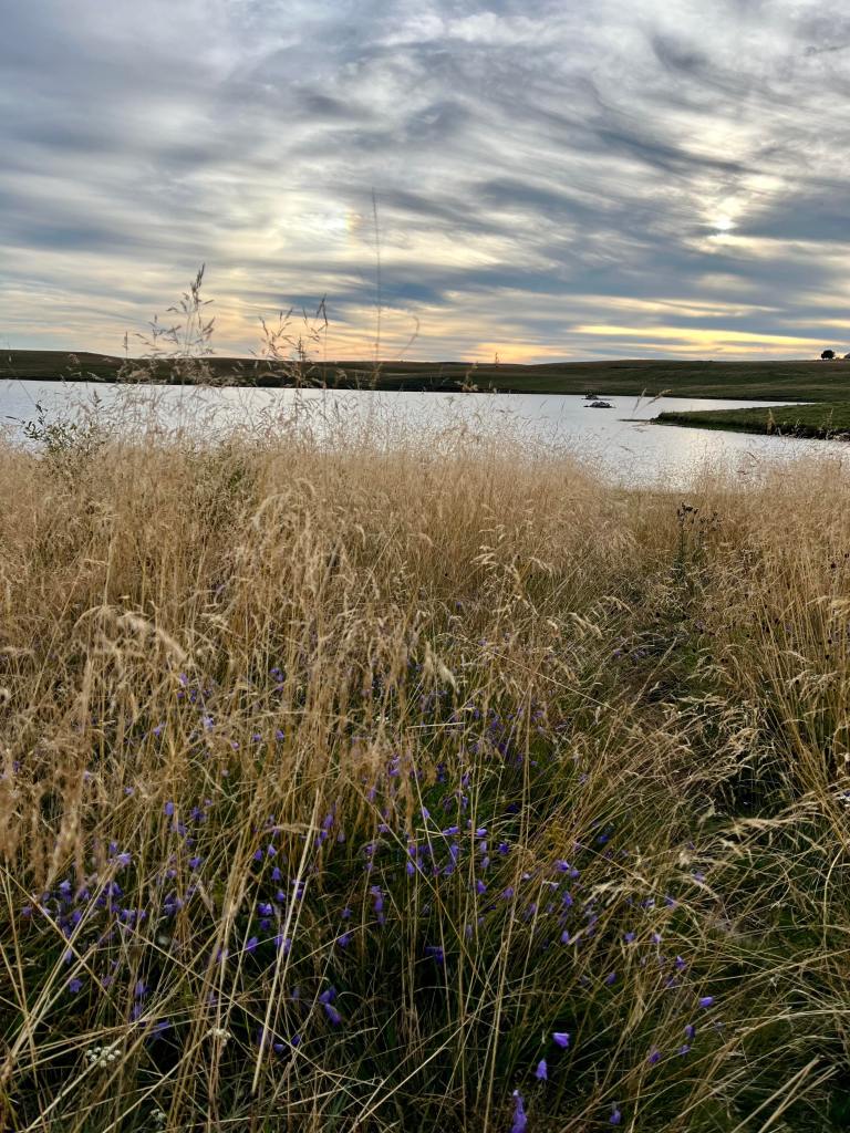 Nous terminons cette première journée en Aubrac par le Lac de Saint-Andéol… bon on cherche encore l’accès « officiel » pour s’en approcher !! Nous avons soulevé une barrière puis avons couru dans les hautes herbes telle Carrie dans la Petite Maison dans la Prairie…