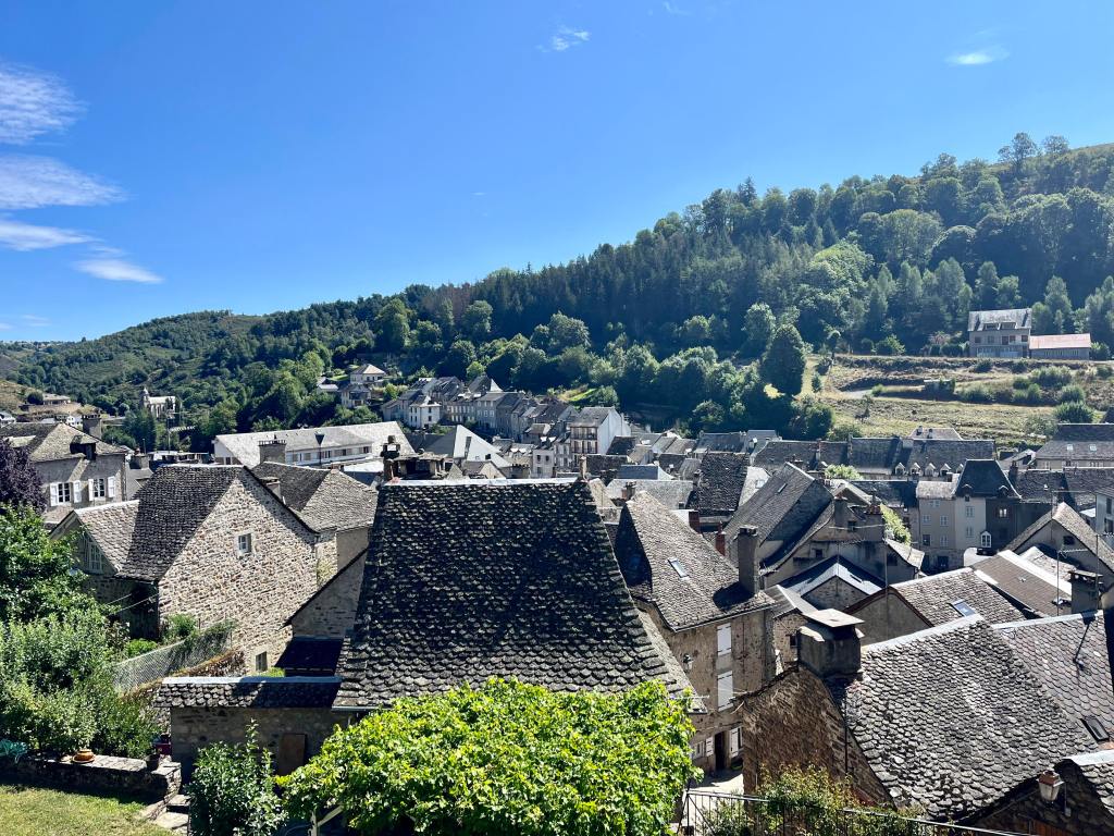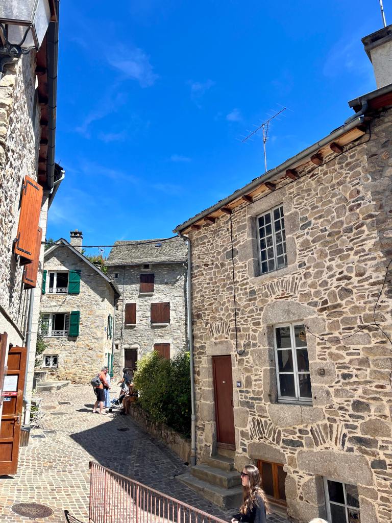 Situé au pied de l’Aubrac, dans la vallée du Lot, son allure circulaire et son caractère médiéval lui donne un charme fou. Ses pierres également.