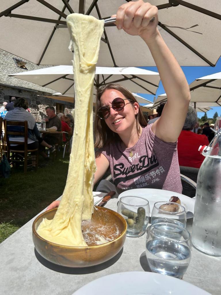De notre côté, nous sommes allées au Buron du Couderc, à Saint-Chély d’Aubrac. Un lieu convivial, simple où les plats sont (bien sûr) faits maison et (surtout) généreux! Pour 24€, le menu incluait une planche de charcuterie/salade, un plat de saucisse et aligot (THE spécialité locale!), du fromage et un dessert maison, notamment une délicieuse tarte à la myrtille.