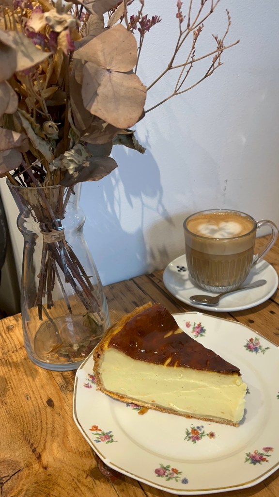 Ici, on vient y boire de bons cafés de spécialité aussi (Mokxa également) et surtout: déguster d’incroyables pâtisseries! Je vous conseille le flan pâtissier, juste incroyable ! Il est très épais et à la texture ultra crémeuse … Alors, convaincus? 😉
