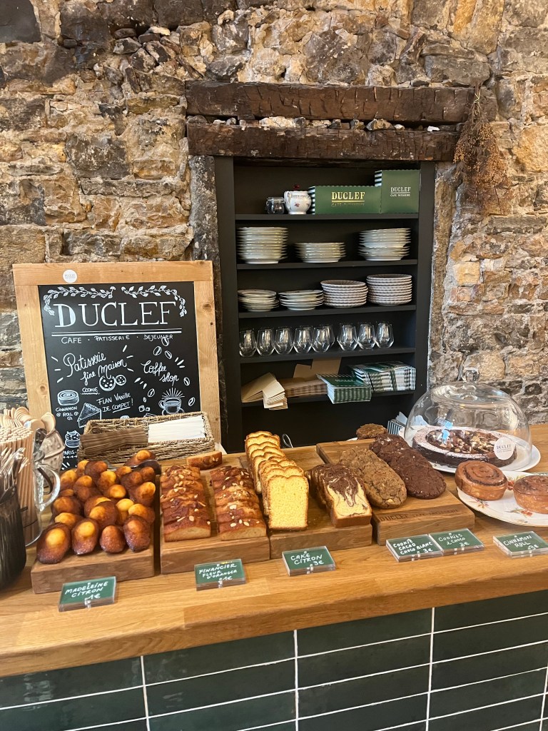 Duclef, c’est une histoire créée par un couple tous les 2 pâtissiers (formés à l’école Ducasse d’Yssingeaux). Le lieu est très charmant avec ses pierres d’origines et sa décoration chinée, élégant par ses couleurs.